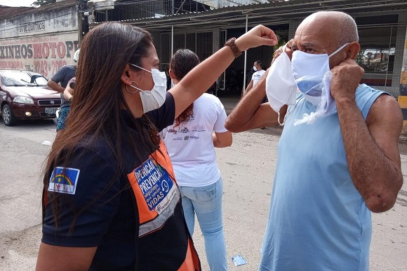 A ação que aconteceu na Av. Antônio Costa Azevedo, Peixinhos, foi realizada no modelo “drive-thru”, e o DETRAN-PE disponibilizou uma equipe de agentes de trânsito e viaturas, além de motos que fizeram a entrega de máscaras na avenida. Já equipes compostas por servidores da SPPVD e representantes da CUFA fizeram entrega das máscaras nas comunidades próximas do local da ação.