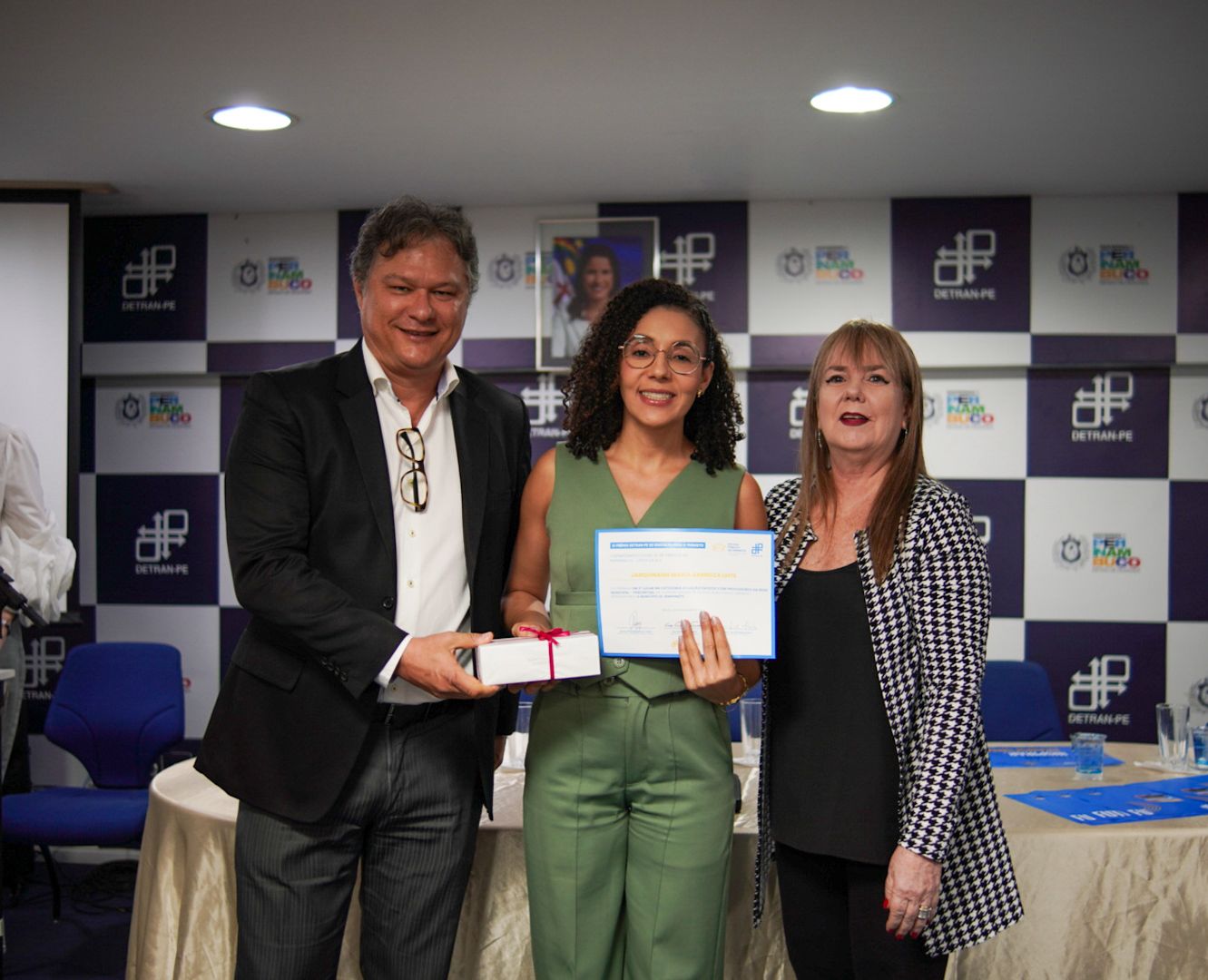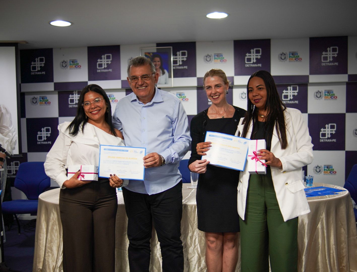 Representando as diretorias do órgão, estiveram presentes o Diretor-Presidente, Vladimir Lacerda, o Diretor de Engenharia e Fiscalização de Trânsito, Tibério Noronha, a Diretora de Gestão, Adriana Mertens e o Diretor Jurídico, Bruno Girão. Pela equipe de Educação de Trânsito do DETRAN-PE, Aurino Francisco, Gerente da Escola Pública de Trânsito, Rachel Curvelo, Gerente de Produção Pedagógica, Ary Felipe Brito, Chefe de Unidade de Integração com a Rede de Ensino, Elideusa Mendes da Costa, Analista de Trânsito e Ruben de Santana Mendonça, Agente de Trânsito.