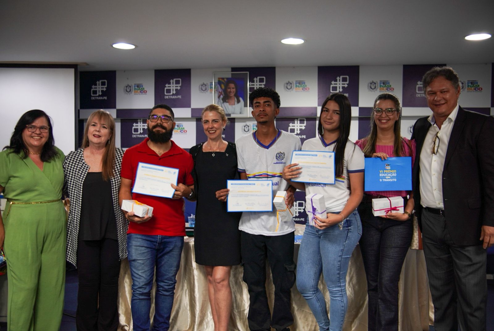 O Departamento Estadual de Trânsito de Pernambuco, em parceria com a Secretaria de Educação e Esportes de Pernambuco (SEE), realizou o Concurso de Educação para o Trânsito com o objetivo estimular estudantes a realizarem produções escritas com a temática de trânsito, bem como encorajar os professores para o trabalho qualitativo e continuado de Educação para o Trânsito em sala de aula. A entrega ocorreu nesta terça-feira (25), na sede do DETRAN-PE, no bairro da Iputinga, com a presença do secretário-executivo de Ensino Médio da SEE, Paulo Dutra e a Adjunta da Superintendência da Receita Federal, Maira Giannico.