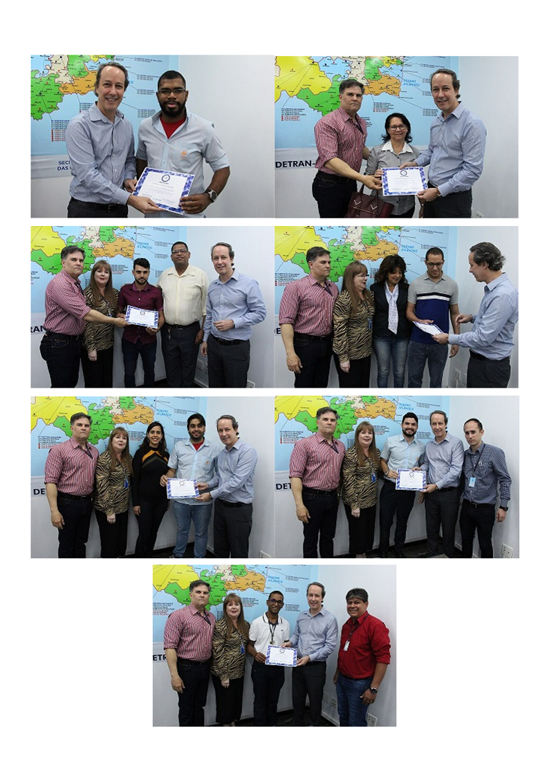 A ação aconteceu no gabinete do Diretor Presidente, faz parte da Semana Nacional do Trânsito. Na ocasião, o Diretor de Atendimento, Cel. Felipe Nascimento, falou que essa é a maneira singular de reconhecer os excelentes serviços que os servidores vêm prestando à população. “Para se ter uma ideia, nos últimos 8 meses, a sede do Órgão fez 78 mil atendimentos, os expressos cidadão, 95 mil, e as lojas dos shoppings, 500 mil”. Felipe disse ainda que, os funcionários foram indicados pelos coordenadores, em conjunto com a Gerente de Atendimento, Ana Teresa Alves Vieira.